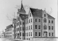 December 28, 1880 at the request of Reverend Gerhard Becker O.F.M. four Sisters arrived from Avilla to begin home nursing. Shortly after coming to Joliet, an epidemic of typhoid fever broke out in the community and they spent many weary weeks caring for the sick and dying. In the spring of 1882, a severe type of smallpox swept Joliet and the surrounding areas. When the epidemic ended, the grateful citizens of Joliet presented the Sisters with $600 to begin a hospital. The Sisters purchased from the Sisters of Saint Francis of Mary Immaculate their convent located at Broadway and Division Streets for the sum of $9,000.![]()